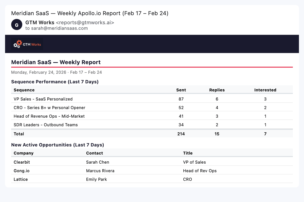 If you are starting from scratch with Apollo.io or already have an Apollo.io instance and want help reconfiguring, GTM Works can help. We are an Apollo.io certified agency partner.
